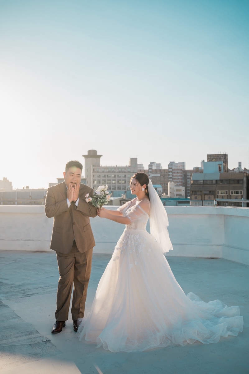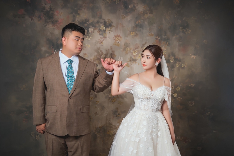 從挑禮服、做造型到拍攝,每個環節都讓人很放鬆。造型師超細心,妝髮完全符合我們想要的感覺;攝影師更是專業又幽默,讓我們在鏡頭前完全沒有壓力,笑容都是真心的。整個團隊都很專業又貼心,讓原本以為會很累的一天,結果充滿歡笑和驚喜。