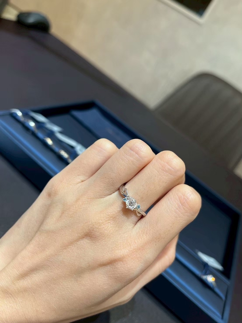 迎接我們的是顧問 Alley,她專業又親切地為我們介紹婚戒。從鑽石的總類、品質,到 4C 等級的細節,她都解說得清楚易懂。她還特別讓我們比較了 天然鑽石與人工鑽石的差異。老實說,以我的肉眼根本分不出來,但聽著她的講解,才明白每一顆鑽石背後的故事與價值。