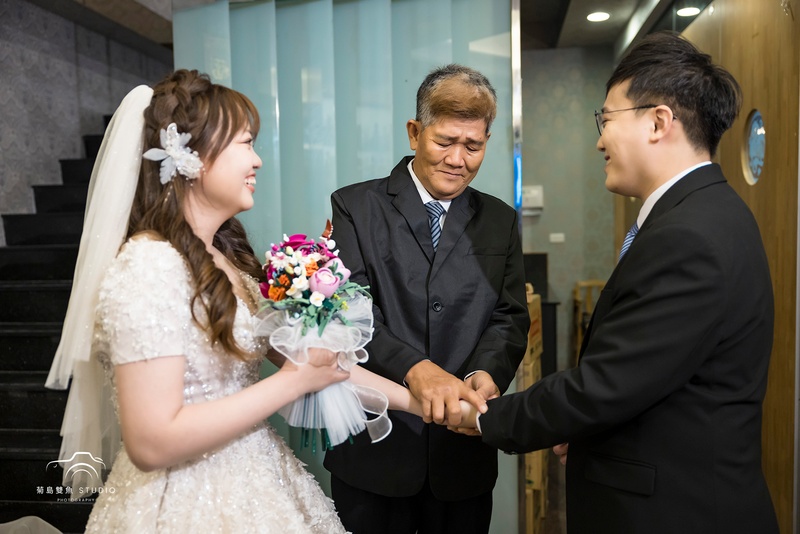 我們選西式進場,爸爸牽著新娘的手,交給新郎