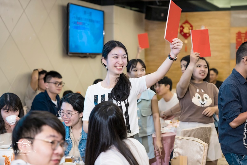 她們也可以提供道具紅、藍的牌子,給賓客舉牌