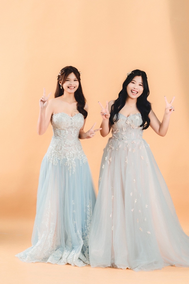 然後PAIGE姐姐對於幫我們挑禮服超細心,每套都超很有耐心的說出顏色或是款式的感覺和搭配