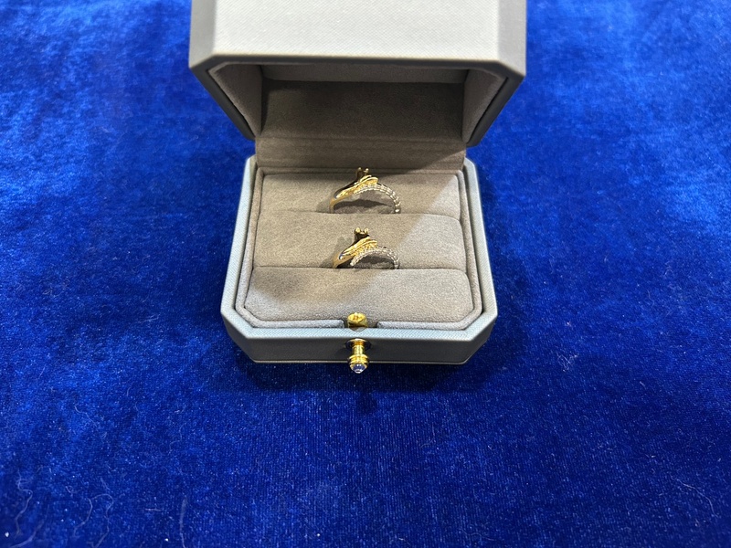 設計師一眼看到貓貓的特色,又參考我們喜歡的戒指樣式,現場繪製了一版設計的草圖,慢慢把我們模糊的想像實現,後續更來回溝通多次,經過設計圖、3D圖確認,才把方案訂下來,中間都非常親切的接受我們的提出的想法調整。