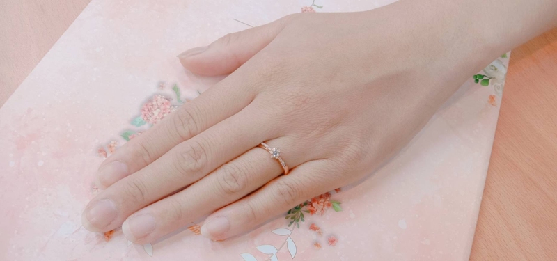 看到戒指第一眼我就被吸引了,好閃亮、好漂亮,謝謝亞緹蜜詩婚戒讓我留下印象深刻的求婚畫面。