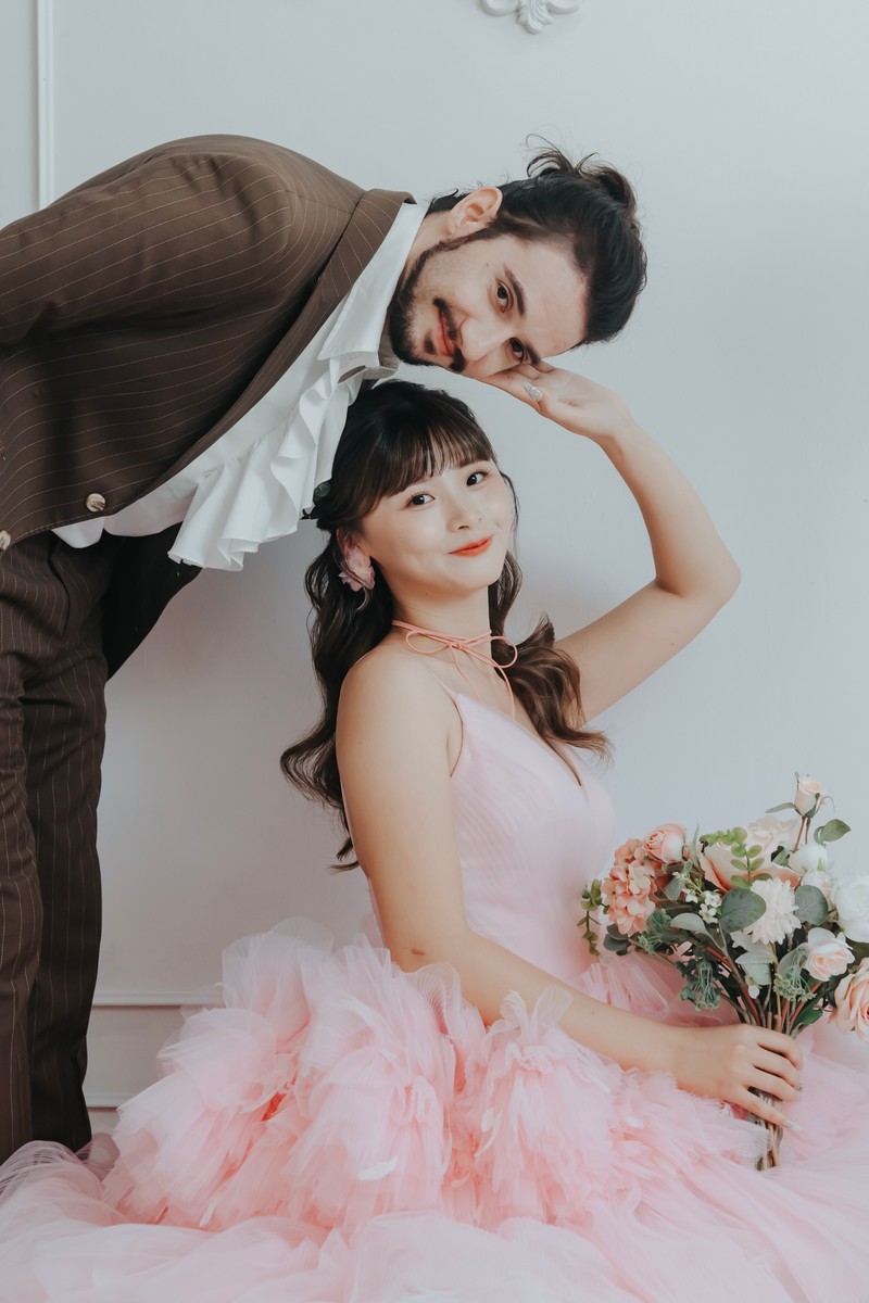 一開始就是被Reina 的作品吸引,韓式妝容感特別強烈,乾淨俐落的睫毛搭配豐滿的臥蠶,剛好很符合我喜歡的風格,在拍攝當天前就會先做功課幫我準備我想要的配件,裝飾,非常用心,又有責任感,給Reina服務非常又安全感,在髮型的部分也超級專業!!非常好看,又牢固。必須要誇獎一下在男生的妝髮部分也很厲害! 雖然我先生的髮量比較少,但是專業的Reina 還是幫我處理到很接近我心裡想要的樣子,還原度90%,非常喜歡Reina 的專業與耐心。謝謝妳完成我的公主夢♥