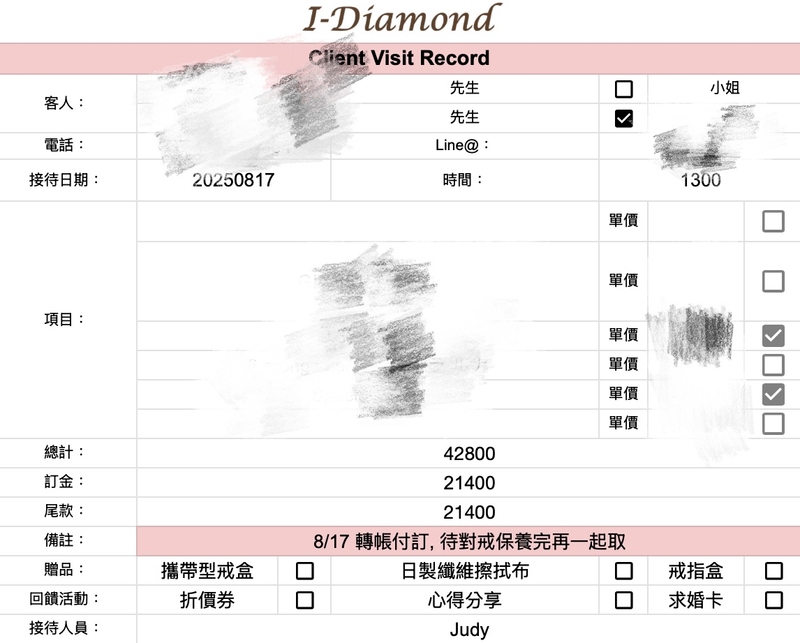 今年,在老婆三十而立的特別日子,我們再次踏入 I-Diamond。 看到熟悉的身影Judy 熱情地迎接我們,彷彿老朋友般。 她仔細聆聽我們這次的需求,不僅關心設計風格,也考量預算,並給予最專業的建議。