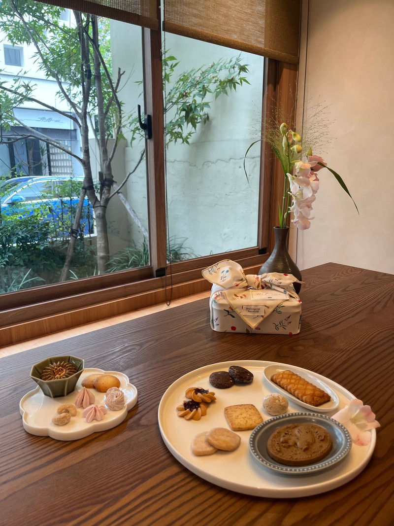 順道是朋友推薦的,主打日式喜餅,老公覺得包裝很可愛因為有很可愛的小方巾包裹禮盒,因為環保不使用紙袋,方巾也可以重複使用,看服務人員綁在斜背包的帶子上很可愛☺️