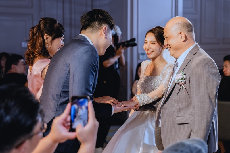婚攝部分是楊攝,真的要大力推薦!他不只是拍得好,還很擅長引導氣氛,把我們拍得很自然,笑容與情感都捕捉得很到位。當天他很貼心地幫我們記錄了很多細節畫面,像是父女牽手、朋友祝福的互動,每一張照片看起來都充滿故事性。尤其我老公平常不太會拍照,但楊攝拍出來完全不像生手,讓我們留下好多值得珍藏的婚禮回憶!