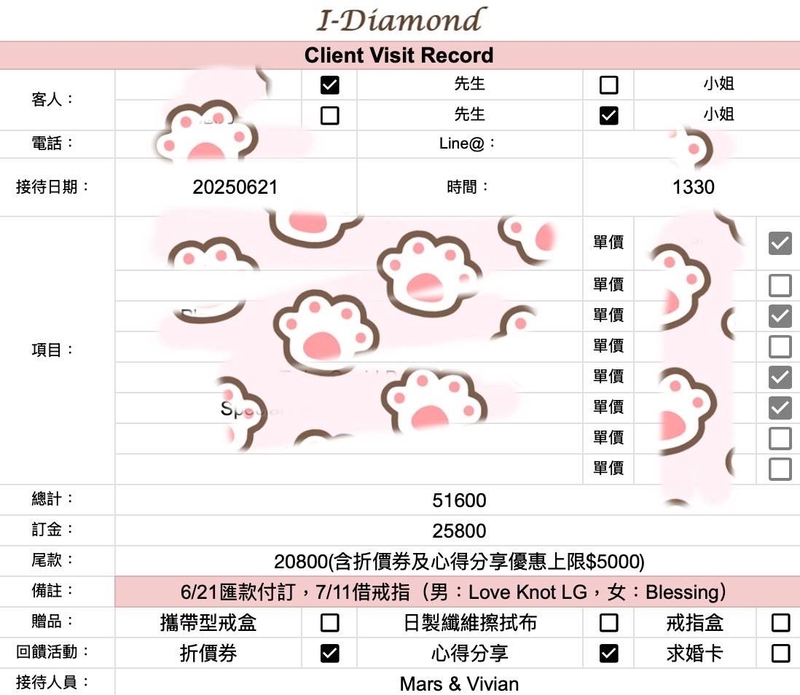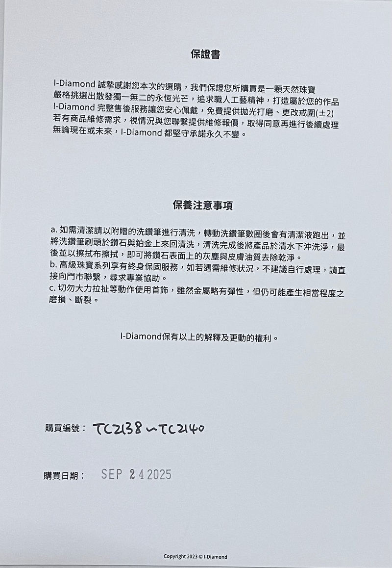 一走進 I-Diamond,就覺得氛圍很舒服,不會有壓力,服務人員也非常親切。整個過程就像朋友陪伴我們一樣,可以慢慢討論、慢慢挑,不用擔心被催促,這點讓我們很加分!