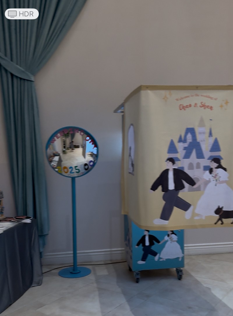 最後的最後,婚禮能順利進行真的是彭園的場地以及工作人員都非常重要,場地部分讓我擺放拍貼機廠商、彭園借的桌子讓我佈置拍貼機、我自備的凸透鏡、還有送客背板(我另外請廠商,不是彭園的背板),這些東西搭在A廳,色調都搭的起來,非常漂亮😍😍😍真的愛死彭園所有工作人員,沒有他們就沒有完美的婚禮(我甚至聽到有賓客說Grace轉場的時候,做得非常好)