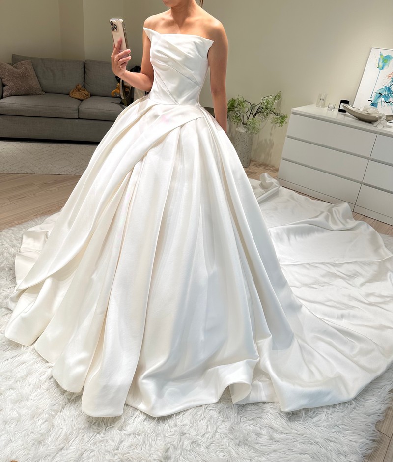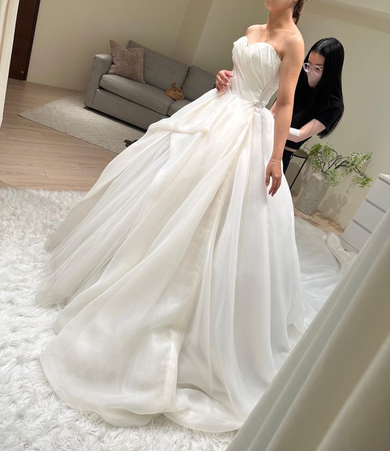 禮秘很體貼地多拿了一件我原本只有考慮的禮服讓我看實體,後來也看了實體決定試穿,最終也選擇那件。