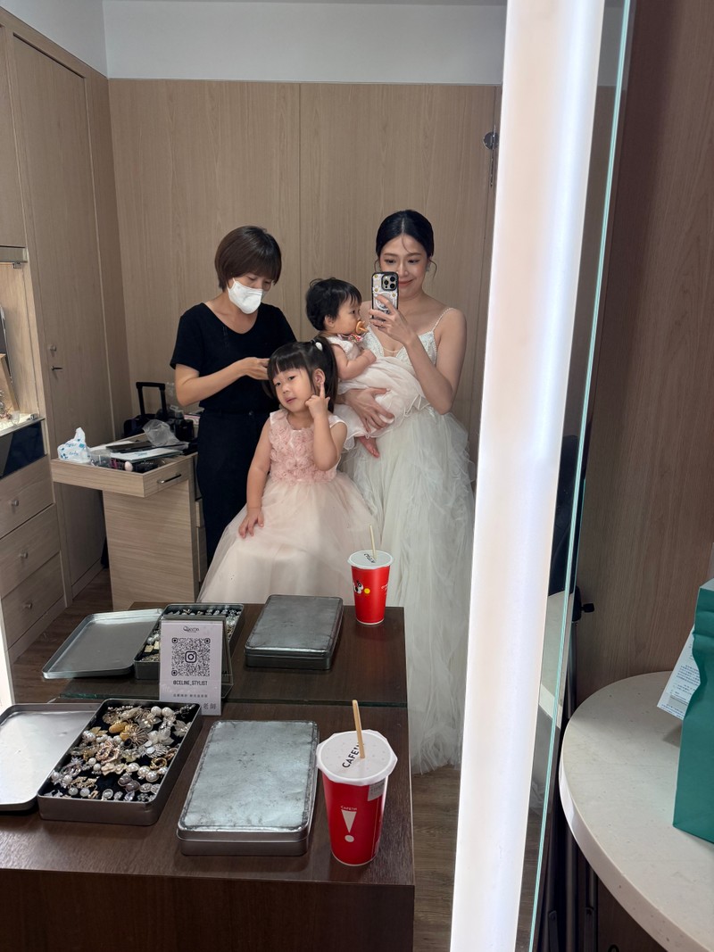 當天我的造型師子晴,幫我設計了我想要的韓系妝髮,完妝後真的超滿意 很多朋友看到動態也都私訊我,覺得妝髮很適合我,我也很喜歡。幫兩位女兒綁頭髮也都很細心用心,弄的很可愛。