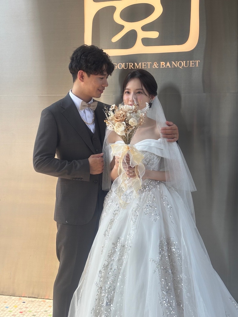 當天的 婚禮管家 Elaine 真的是救星等級,從新娘準備、換裝到進場都全程照顧,我們幾乎什麼都不用擔心。外場主管家寧 帶領的服務團隊也很棒,送菜節奏完美、服務態度超好,賓客們都一直稱讚。還有音控 坤霖,燈光跟音樂都配得恰到好處,整場氣氛超到位。