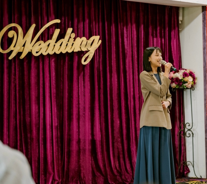 到了婚禮當天,她用溫柔又穩定的聲音,串起每一次進場的環節,現場氣氛剛剛好。無論是簡短的感謝言,還是歡笑的互動,她都讓每一刻變得自然又充滿溫度。