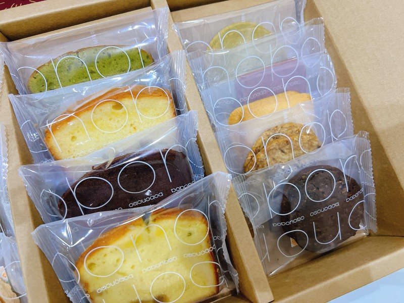一走進展櫃,不同其他接待人員一開口就問起婚期、數量、價格,反而先是介紹自己得產品有甚麼,在介紹的過程中,一包一包的小蛋糕一一的撕開,請我們先品嘗,我拿起了第一塊,服務人員用心地介紹著這塊蛋糕的成分,其實我沒甚麼注意聽,只是手拿著蛋糕,淺嘗了一口,原先想著「應該跟其他家差不多吧」,但吃下去是一種令人驚豔的感受,濃厚的地瓜味與蜂蜜的甜味在口中猛然的衝擊我的口腔,此時我才開始認真地聽著服務人員解說,然而桌上出現了一塊不太大,而且是綠色的餅乾,出於好奇,我拿了起來放進了口中,那又是一次味蕾的衝擊,九層塔的味道與辣椒的辛辣味,像波浪一樣席捲而來,此時的我,像是經歷一場喜餅交響樂般,享受著波波諾諾給我的全新感受,吃完九層塔辣椒口味的餅乾,在上來的是柚香烏龍,然而這個餅乾,徹底地把口中的味道平衡的恰到好處,烏龍的清香,與柚子的味道恰到好處,像是為這次試吃的喜餅寫上一個平衡完美的結局。