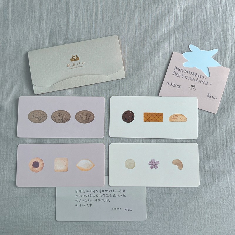 因離婚期大約剩2個月而已,所以連續兩天試了三家餅店,「順道」是安排試吃的第一家,三家店試吃下來,「順道」是我們一致認為體驗最好的:對於餅乾的介紹非常詳盡,每款的味道也很美味;接待人員十分的友善及專業,方案費用講解的很清楚,而且決定的時效性也能讓人有足夠的時間好好考慮,這點真的讓後續還有安排其他家餅店試吃的新人們感到非常貼心,加上很有特色的風呂敷包裝,在眾多餅店中脫引而出。