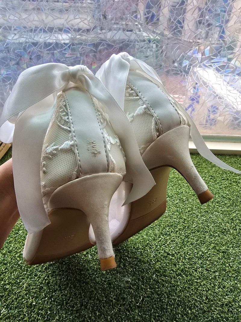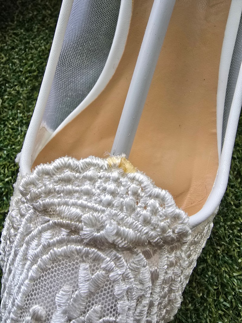 👠【白色蕾絲透膚高跟鞋|23.5號】$600 (原價1980)