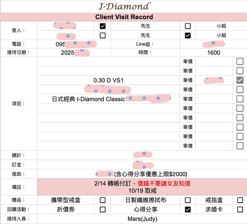 在看官網的時候,I-Diamond 的預約流程最直覺,不用填太多資料就能直接透過Line預約