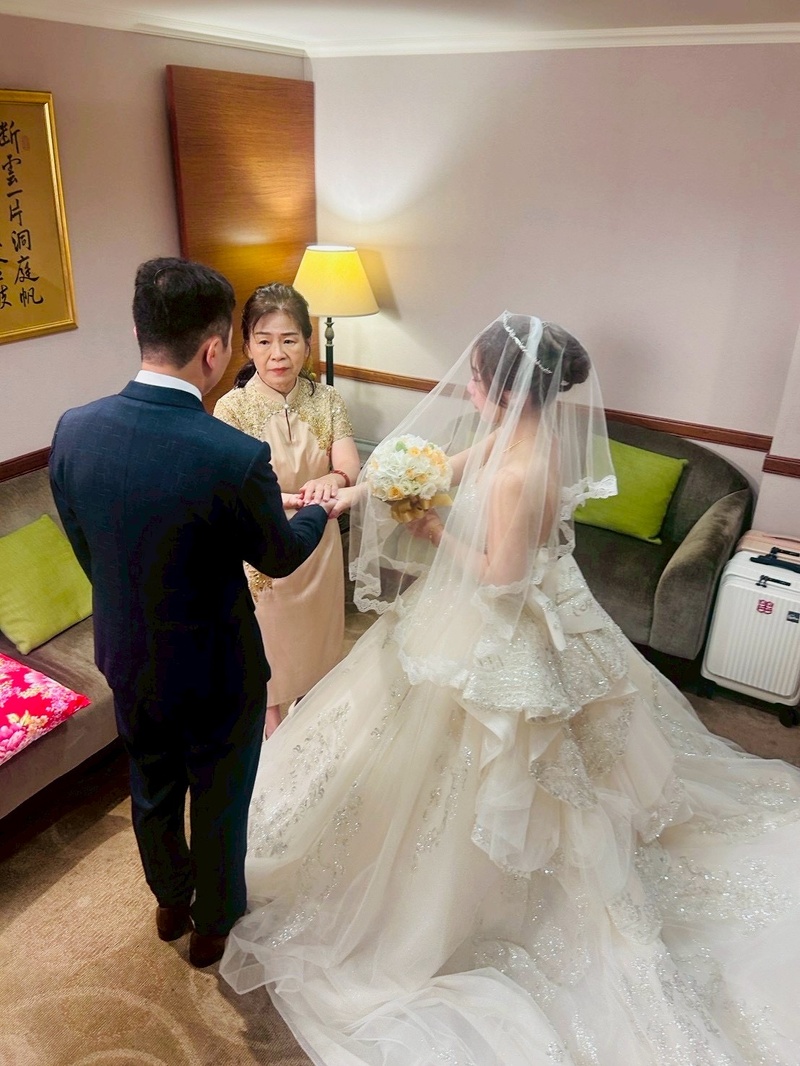 結婚前就在煩惱文定迎娶的儀式要如何進行,深怕場面流程不順、冷場尬尷,還好在好婚上找到Peggy,服務非常熱忱,婚前就會跟新人會談三次,仔細講解流程、準備的物品、每個人的職掌,儀式當天還會先帶女方彩排一次,儀式進展也非常熱絡、好話不斷,時間掌握準確,甚至車頭彩綁錯車也被即時發現改正,雙方家長都很滿意,讓我們有個完美的文定迎娶儀式。