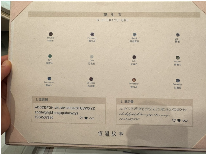 從設計到戒指尺寸、刻字內容、誕生石等等,