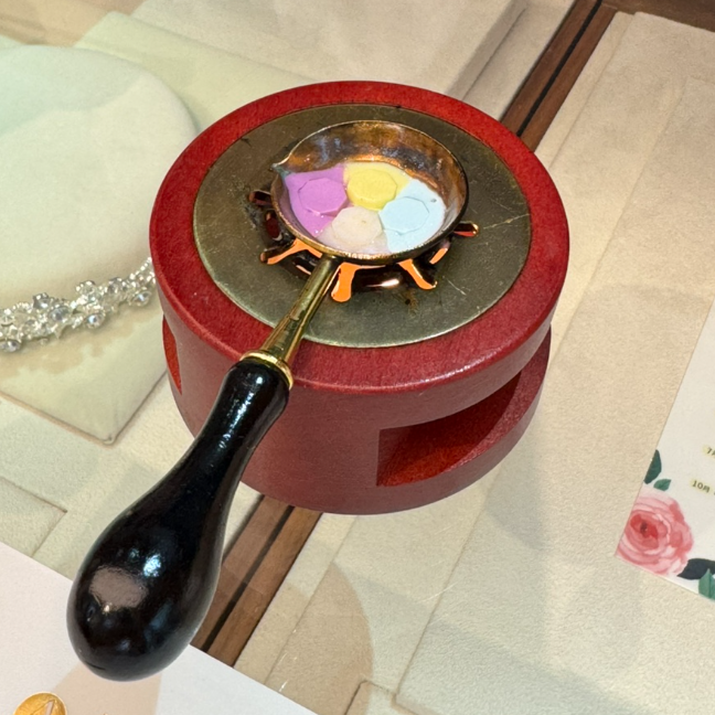 在寫信的時候,店員在一旁融化了我們事先選好的封蠟顏色。