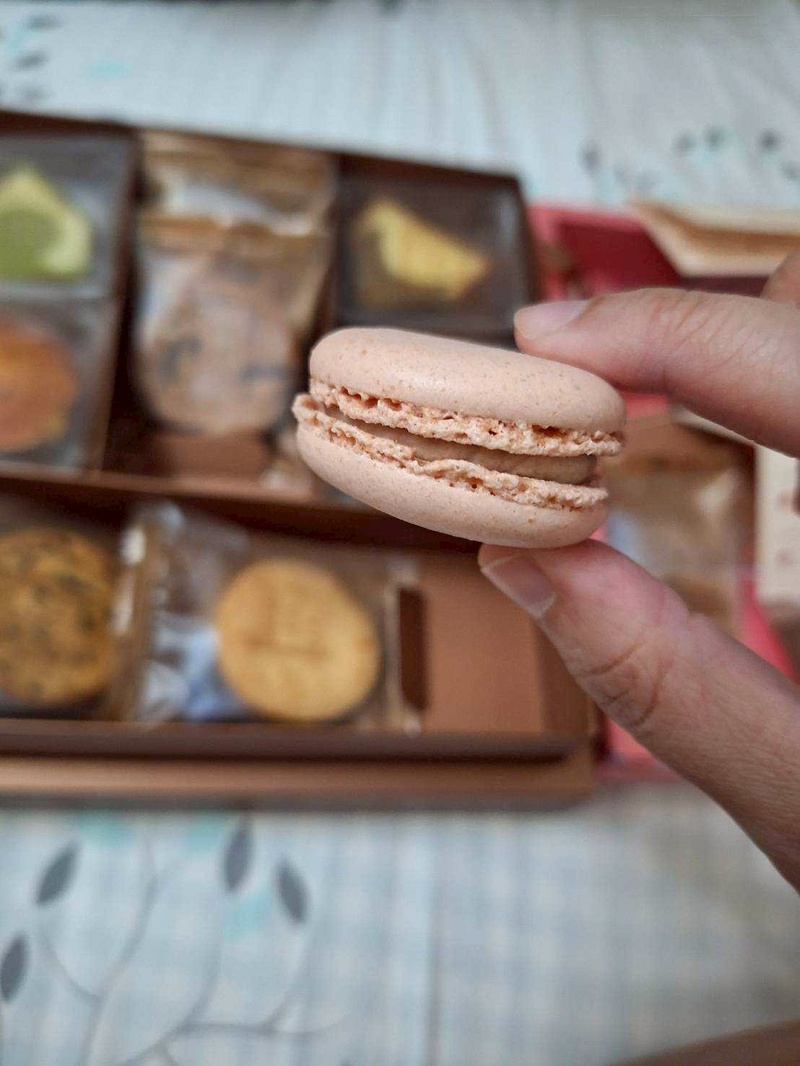 最後他選了 檸檬萊姆馬卡龍、玫瑰馬卡龍,不會甜膩而且口感很細緻,不愛吃甜食的我也覺得很好吃,讚