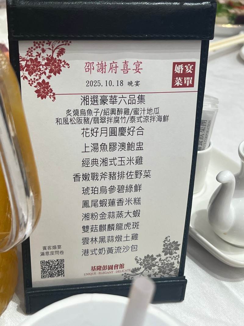 第一次婚宴就獻給基隆彭園,一來是本身基隆人、二來是交通也算方便因此當一開始與婚企人員接洽時馬上就下訂了,首推婚企Sunny團隊認真與耐心的幫我們解決大大小小的事情,當天其實發生了一點點瑕疵還好Sunny即時又迅速的幫我們解決,當下肯定是忙到焦頭爛額有Sunny團隊協助我們很完美的完成了簡單而隆重的婚禮,想順便誇讚一下主持人斑斑因為有她的認真引導流程與介紹讓整個婚宴加分不少,除了主持的內容專業度以及介紹家庭與菜單都充分讓我們感受到對於新郎新娘的功課有做很足,許多人都說因為她的介紹讓我們另外準備的菜色印象非常深刻。