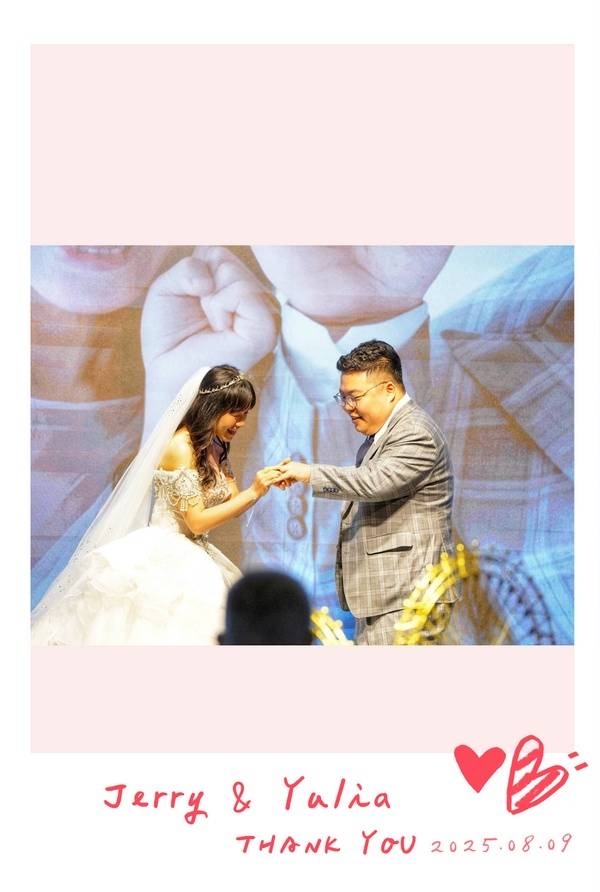 當初選擇拍拍印,是想讓賓客與我們的互動可以更多元,讓來參與的賓客能夠帶著滿滿回憶開心回家,令我超乎預期的感動,拍拍印小幫手們不管是背板前的合照、台上新人都會協助拍照,這點非常的棒,讓我們新人能夠更多角度來回憶這場婚禮,後來婚禮結束後賓客也都一致讚賞拍拍印,感恩你們!!