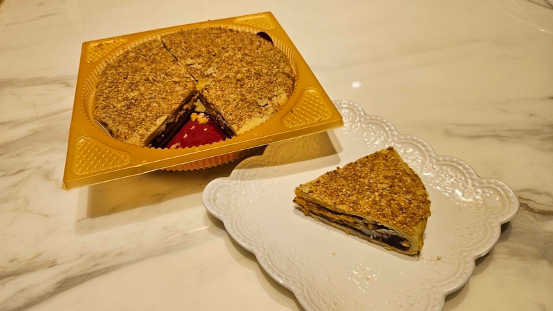 鴛鴦玉露的餅皮是酥脆的,內線不會太甜也不會太鹹就是融合得很剛好,加上堅果的脆脆口感真的很好吃!