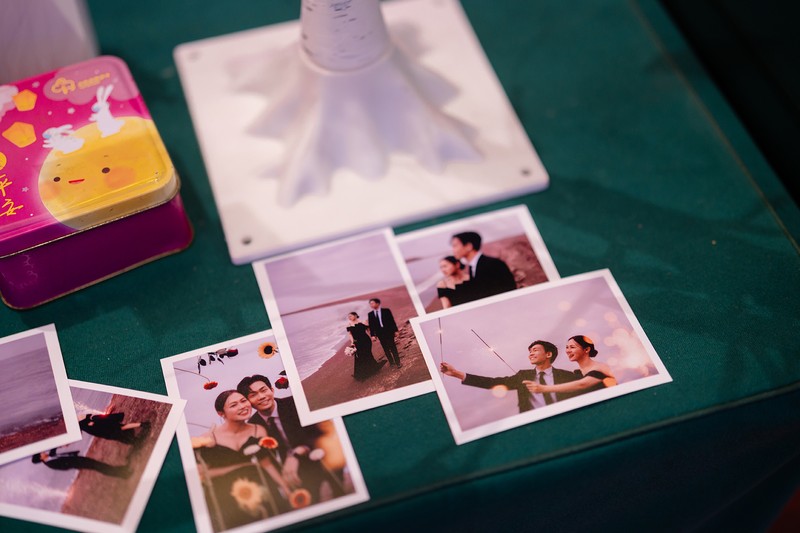 最後,拍拍印有很多貼心的小舉動,像是工作人員除了現場引導與教學之外,還會盡可能的幫新人側拍並洗出來,這對於當天都在忙碌的新人來說,真的是一大福音!而且服務人員還會幫忙將相片整理成一整盒讓新人帶走,而且賓客未領取的照片也會蒐集起來,真的是非常非常感謝他們,讓我們的婚禮圓滿與順利!