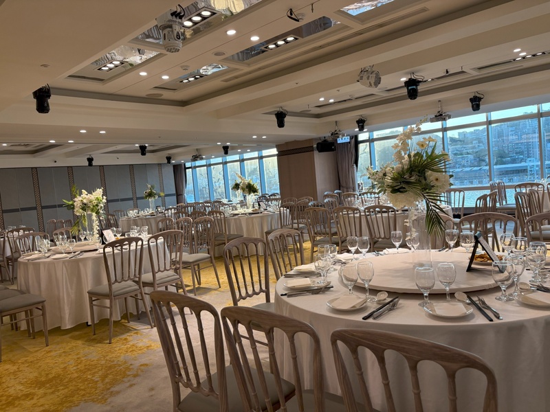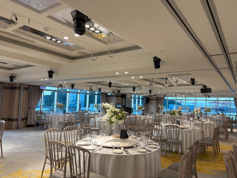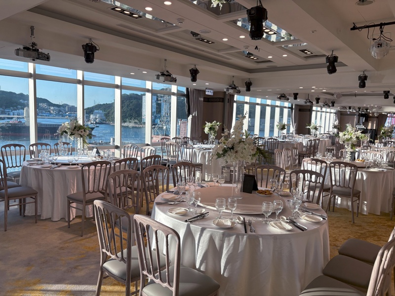 基隆彭園會館的婚宴場地擁有極佳的臨海優勢,從迎賓大廳到宴會廳皆以明亮自然光與優雅色調打造,營造出高質感又浪漫的氛圍。大片落地窗能直接欣賞海港景緻,白天視野開闊,夜晚燈光倒映在海面上,更添浪漫氣息。整體空間挑高、動線流暢,無論桌數規劃或賓客出入都十分便利,場內音響與燈光設備完善,適合舉辦各類婚宴與宴客活動。交通部分鄰近市區,停車位也相對充足,對新人及賓客都相當友善。接待人員 Vicky 在導覽過程中親切且專業,詳細說明了每個廳別特色與婚宴流程,讓我們能更清楚評估場地的可行性與氛圍,是一次愉快且印象深刻的參觀體驗。