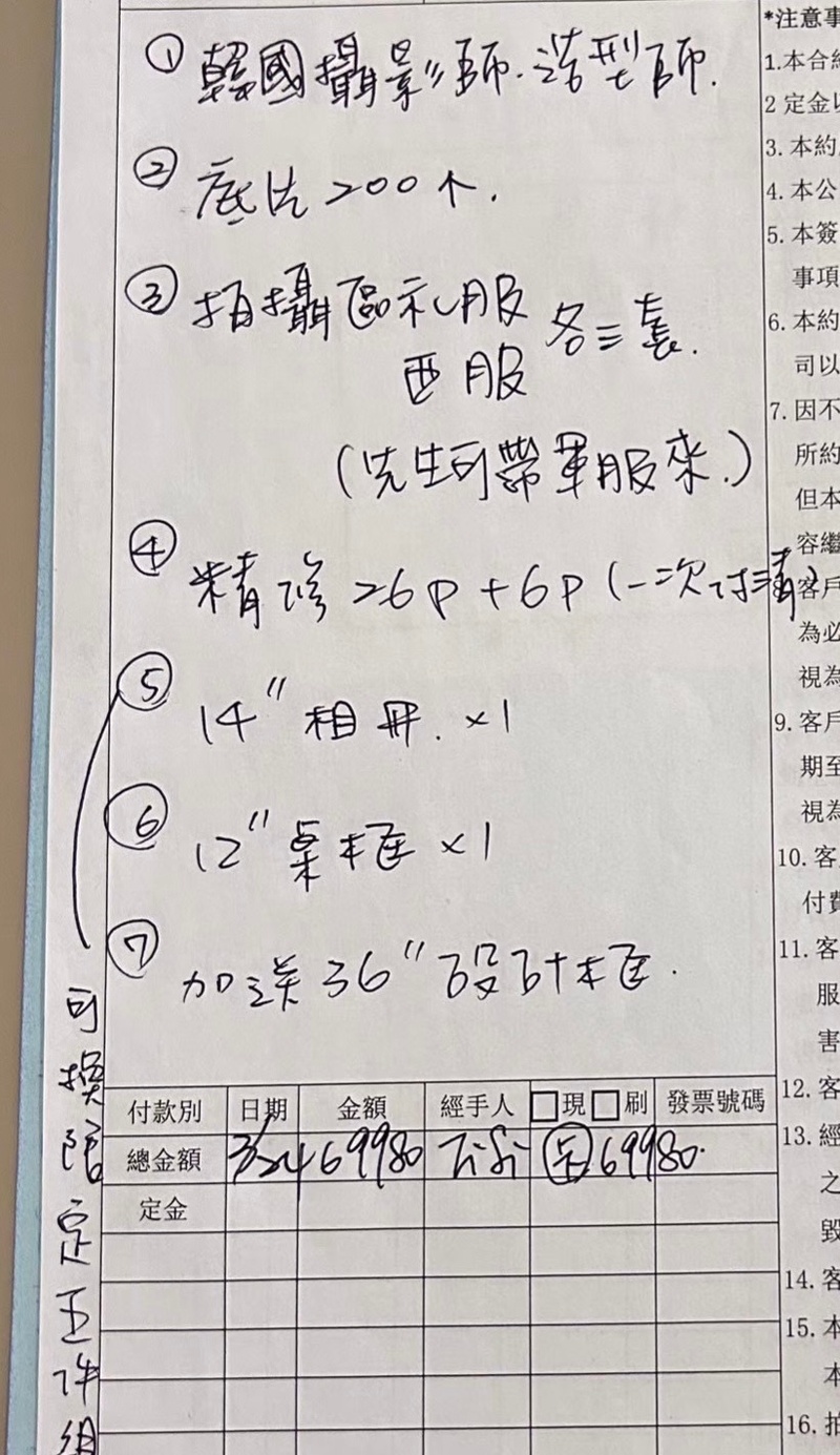韓國藝匠Korean Artiz Studio韓式婚紗攝影合約