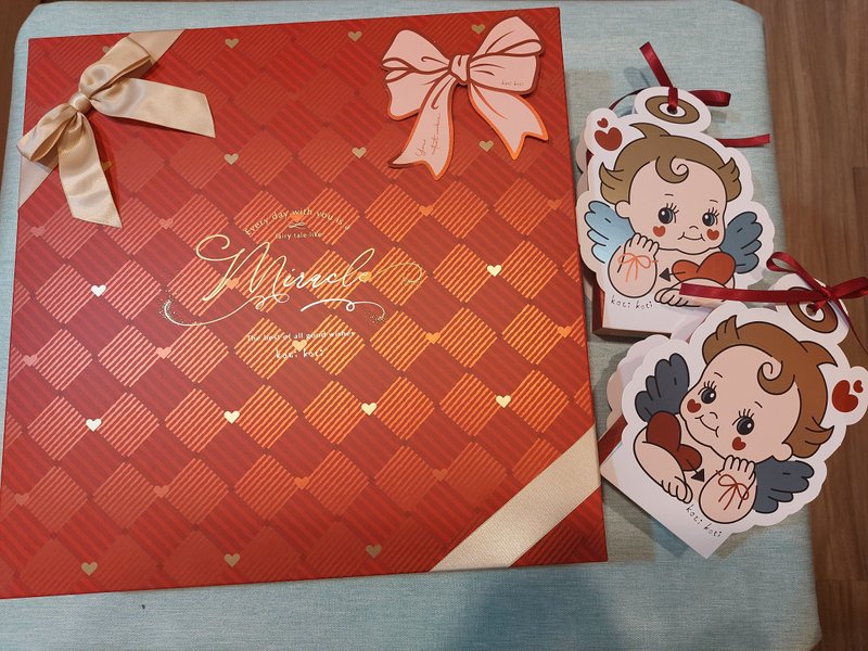 後來因為考量餅乾保存跟運送怕破碎,我們選了童話故事禮盒,裡面可以自選8種包裝商品跟一盒西淑鐵盒餅乾,二種包裝都能滿足,真的很棒,我們提早訂購還有早鳥禮,一盒喜餅會送一份愛神小禮是可愛的邱比特,裡面是單包裝餅乾隨機出貨,打算拿來當桌上禮,試吃後當場下訂贈送心動魔法禮盒。推薦在備婚的新人們來試吃