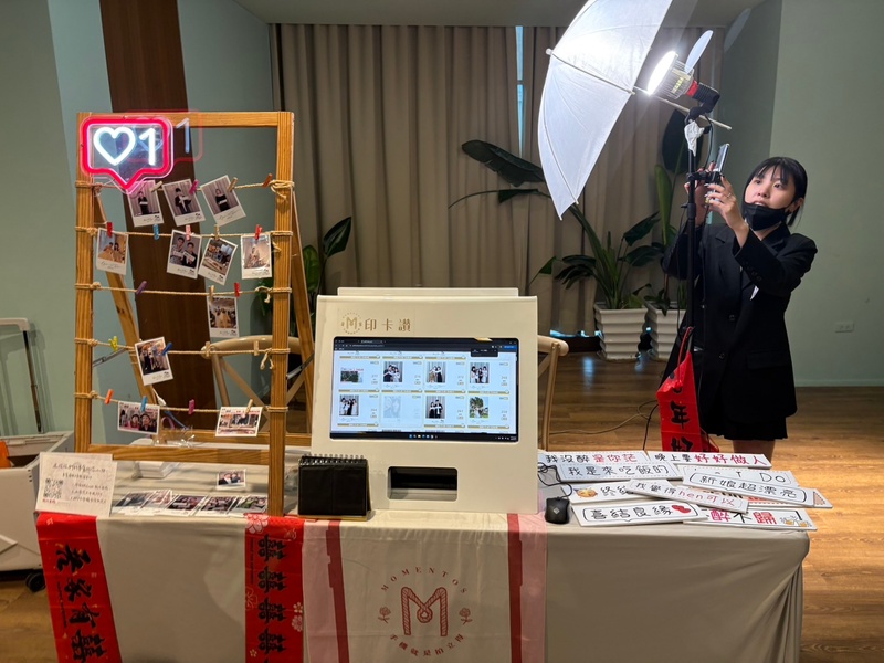 小編會在官方line上在事前都將細節瞭解清楚,到了當天兩位印卡讚的小幫手會自己到會場進行裝機,等我忙到回過神,他們已經都準備好了,讓人相當放心,在婚禮途中小幫手也會時不時出現在旁邊側拍,並且幫我們把照片印出來,完全不用擔心自己花了錢卻沒有體驗到🤣