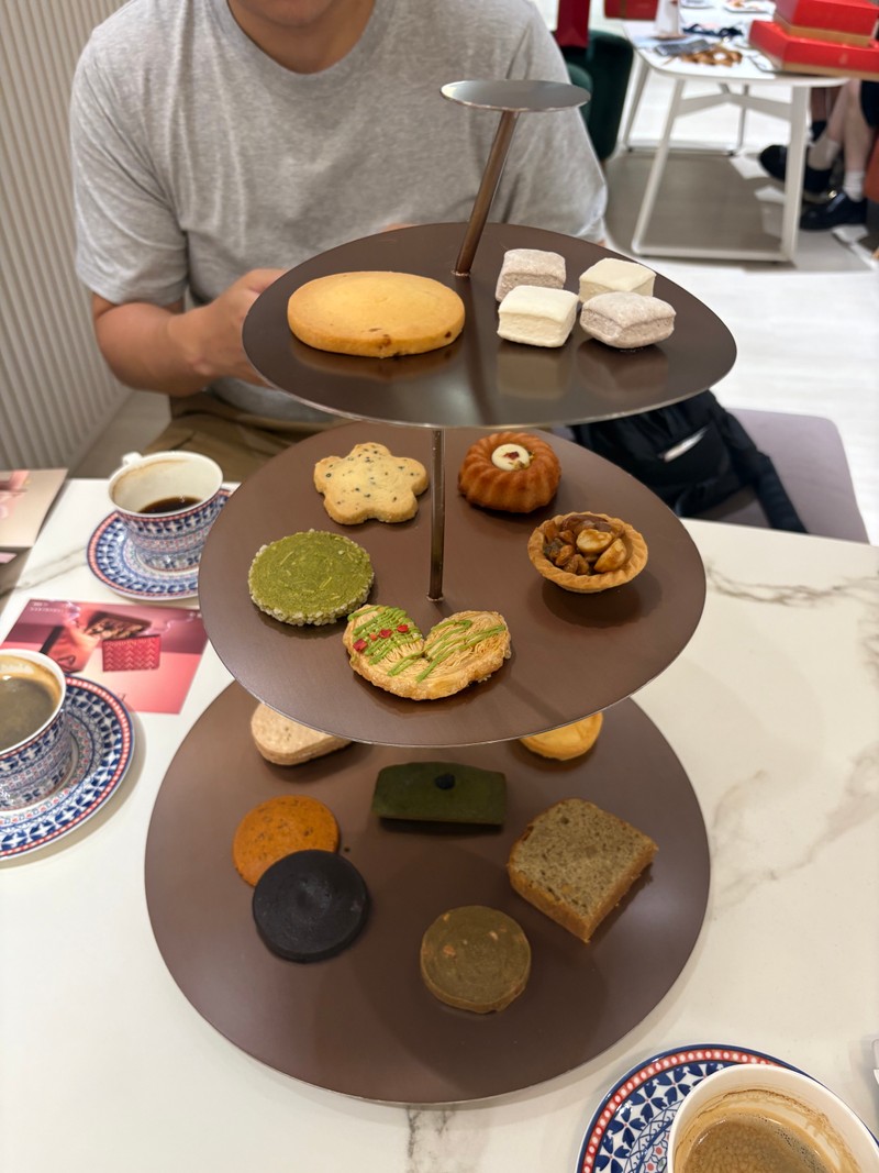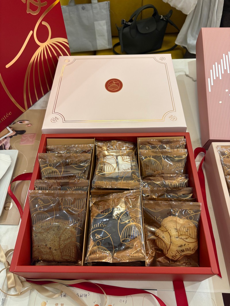 到仁愛門市試吃,負責服務介紹的店員非常專業的介紹以及讓我們就像是在享受一場下午茶盛宴一樣試吃想試吃的喜餅,居然還有搭配的現沖咖啡(應該是Nespresso 的膠囊咖啡)或紅茶,還會依照我們到店試吃的人數幫我們分好,本來還想說餅乾太多無法一次試吃完,分好後剛好一人可以一口,每個餅乾口味也都可以試吃到。搭配的咖啡/茶飲盛裝的杯皿也很講究,咖啡都是現沖煮,一點都不馬虎。