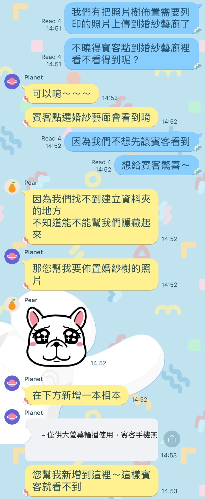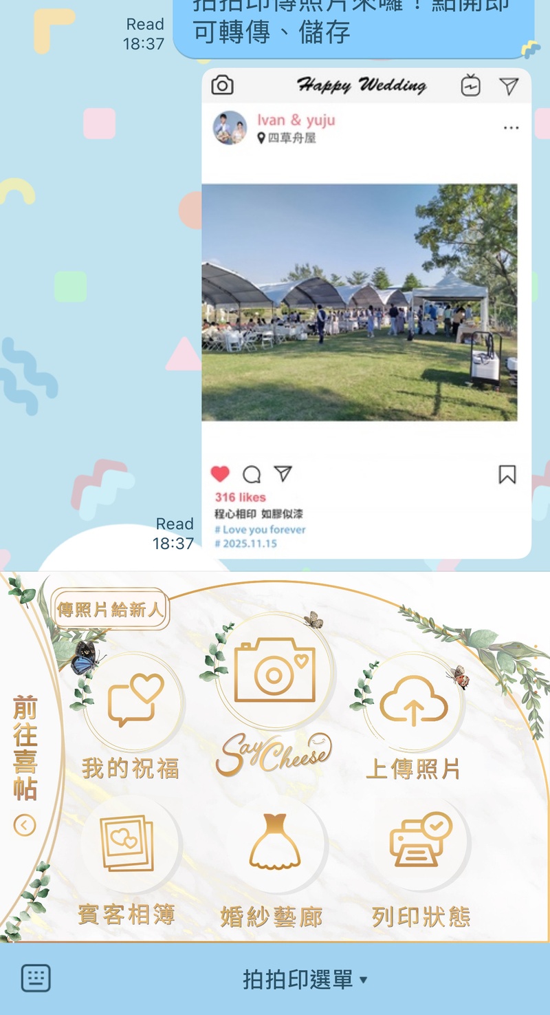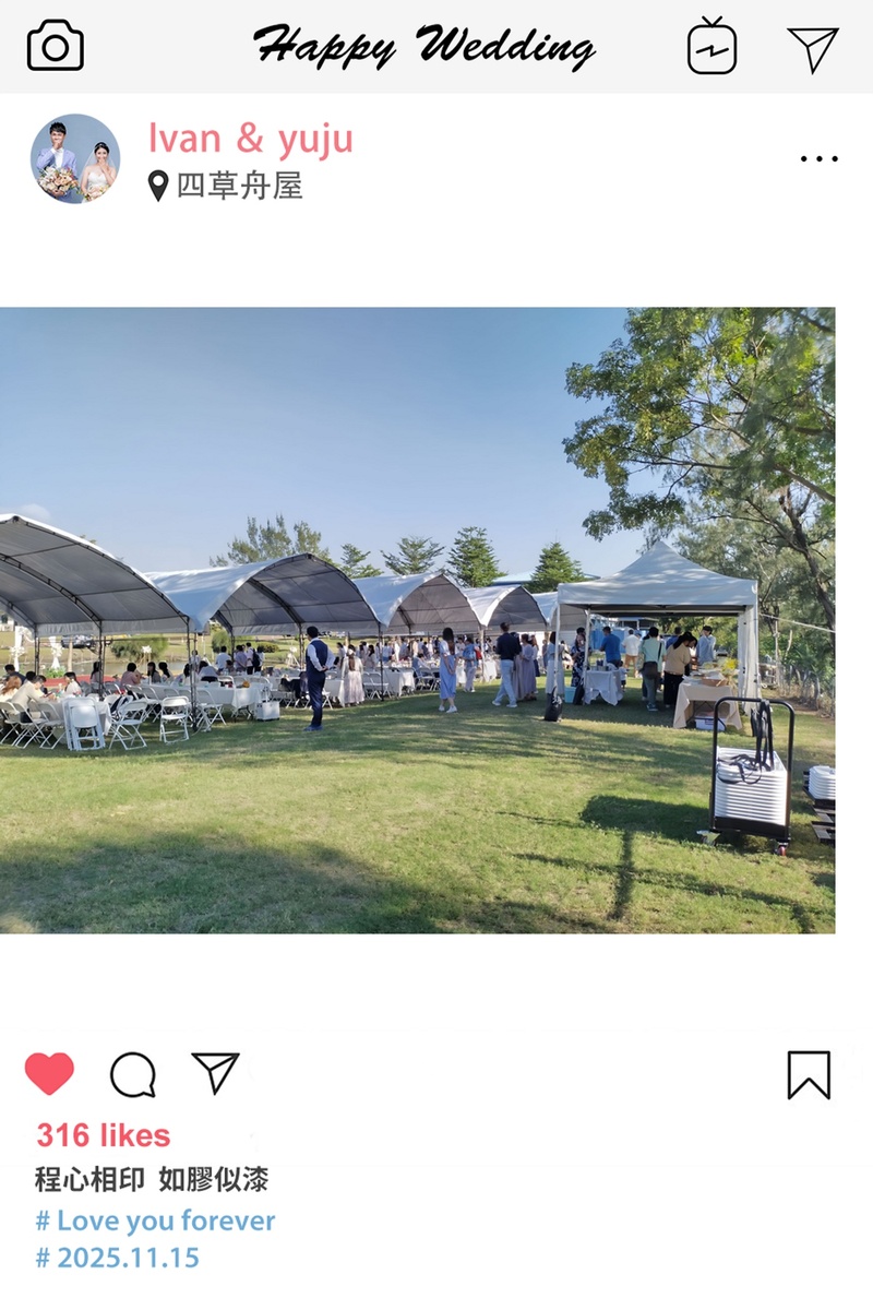 婚博展意外看到拍拍印,現場體驗感覺很適合我們的戶外婚禮,於是當下就下訂了。