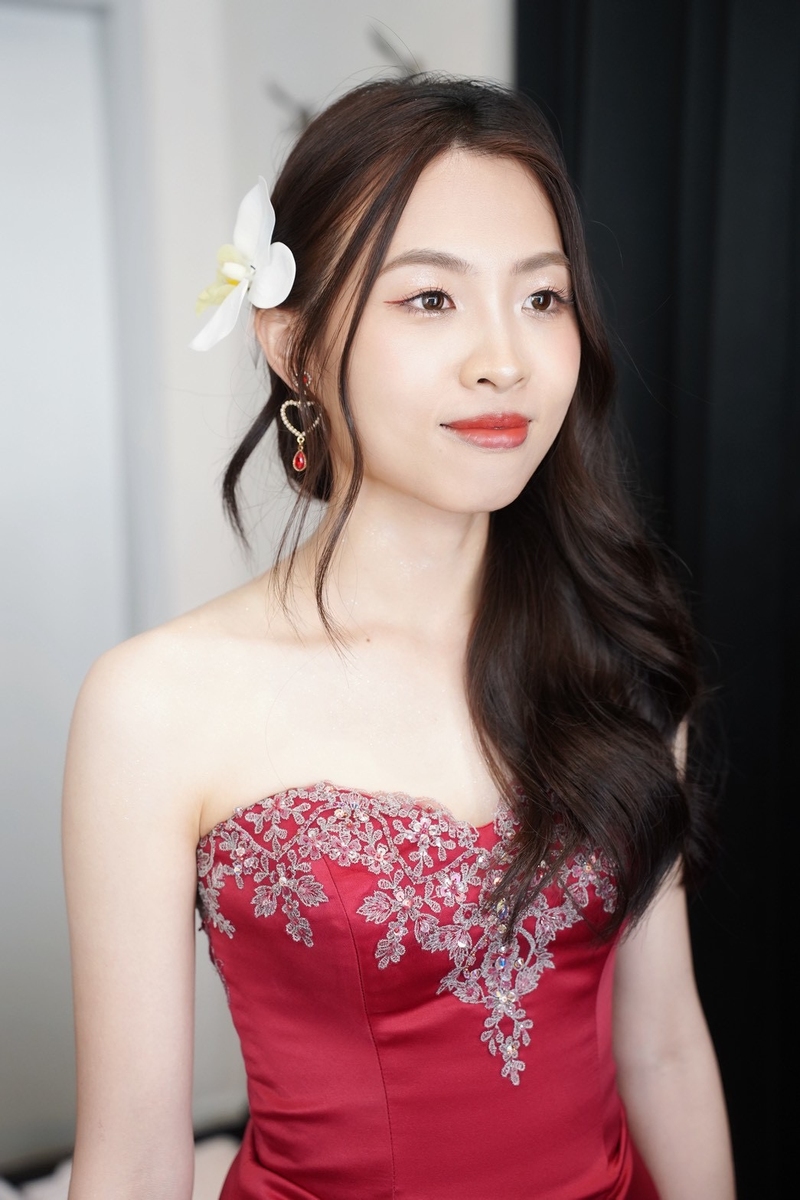 婚禮當天化妝時也很好溝通,人又親切,而且準備超多種類的飾品可以選擇,整個過程都很自然,妝感真的很精緻,也完全呈現我想要的感覺,拍照、近看都很好看