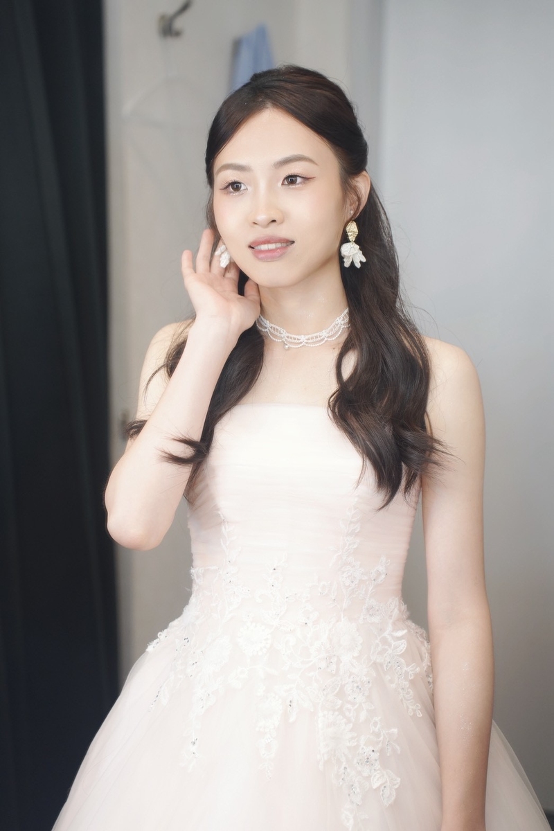 婚禮當天化妝時也很好溝通,人又親切,整個過程都很舒服自然,妝感真的很精緻,也完全呈現我想要的感覺,拍照、近看都很好看