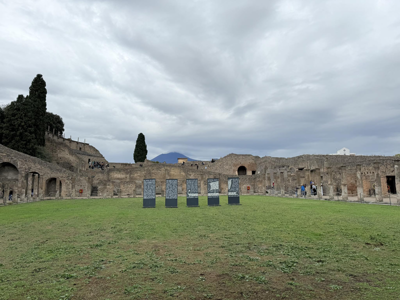 Day2**住一晚卡布里島,卡布里島的夜晚也是很美,涼風徐徐直接在小巷內買了一條圍巾~期待隔天的藍洞探險,可惜海平面過高小船進不去小洞,只能坐船觀光繞島一圈~接著到維蘇威火山猛烈爆發後的龐貝,感謝老丁的詼諧介紹,讓封存了超過 1,600 年,一直到 18 世紀被重新發掘後,這座古城才再次「重見天日」。保留完好的街道、建築與浴場及妓院等,讓龐貝成為今日世上最珍貴的古羅馬考古遺址之一。