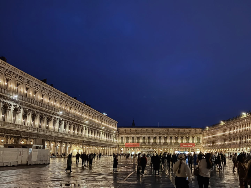 Day6.Day7**威尼斯,水都之稱,是一個沒有汽車通行的城市,僅有的交通工具就是船,坐著貢多拉搖擺在河道中,發現這裡的水手都很年輕,廣場聖馬可廣場及鐘樓是當地著名地標,登頂鐘樓上去吹吹風,看著威尼斯四面風景,如果是晴天。還會想再來一次。總督府道奇宮,裡面的大議會廳金碧輝煌及豐富的收藏,嘆息橋也是著名的景點之一。這裡也有名品街,來這裡可以一次買齊想要的(店員說的)島上的餐食也不便宜,享用一餐加酒水也要2.3000台幣,墨魚麵是必吃。下塌兩晚希爾頓飯店,是我覺得最好吃的早餐之一。