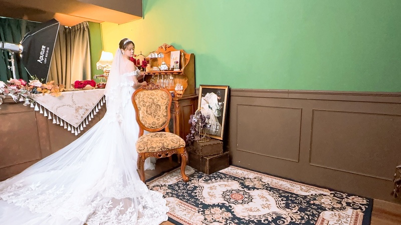 婚紗攝影當天遇上了大小姐化妝師,幫我變得超級美麗,甚至還有自備獨一無二的頭飾,讓我真的超級開心(不會撞款