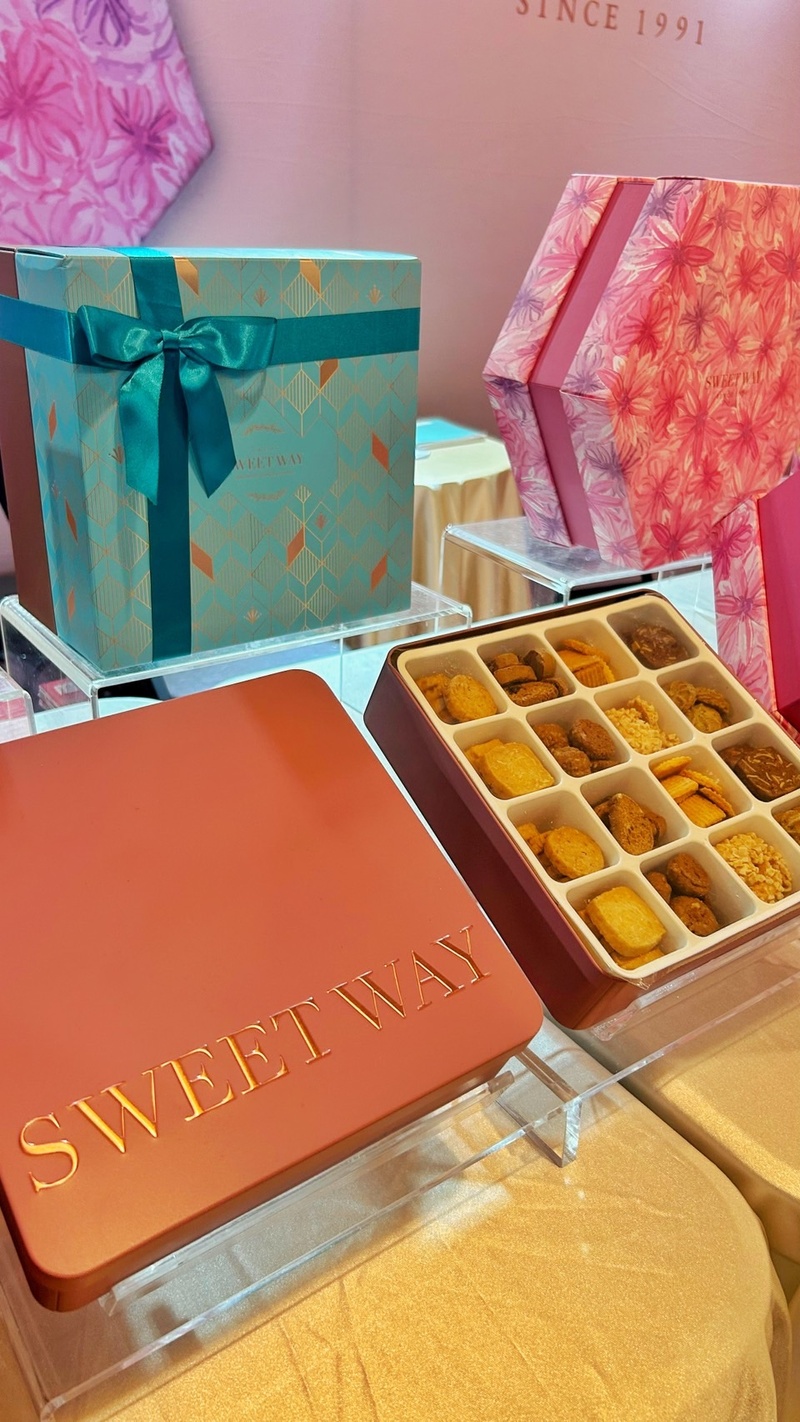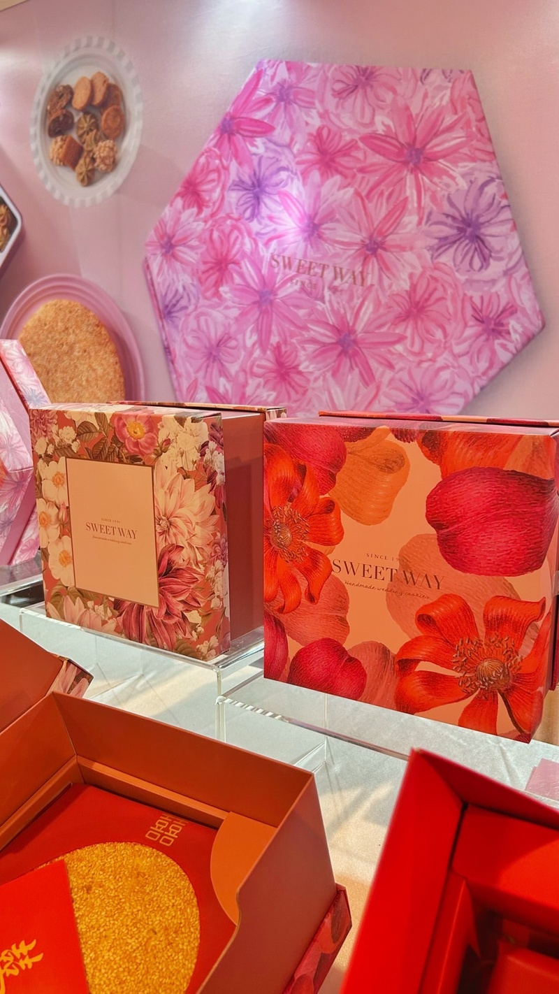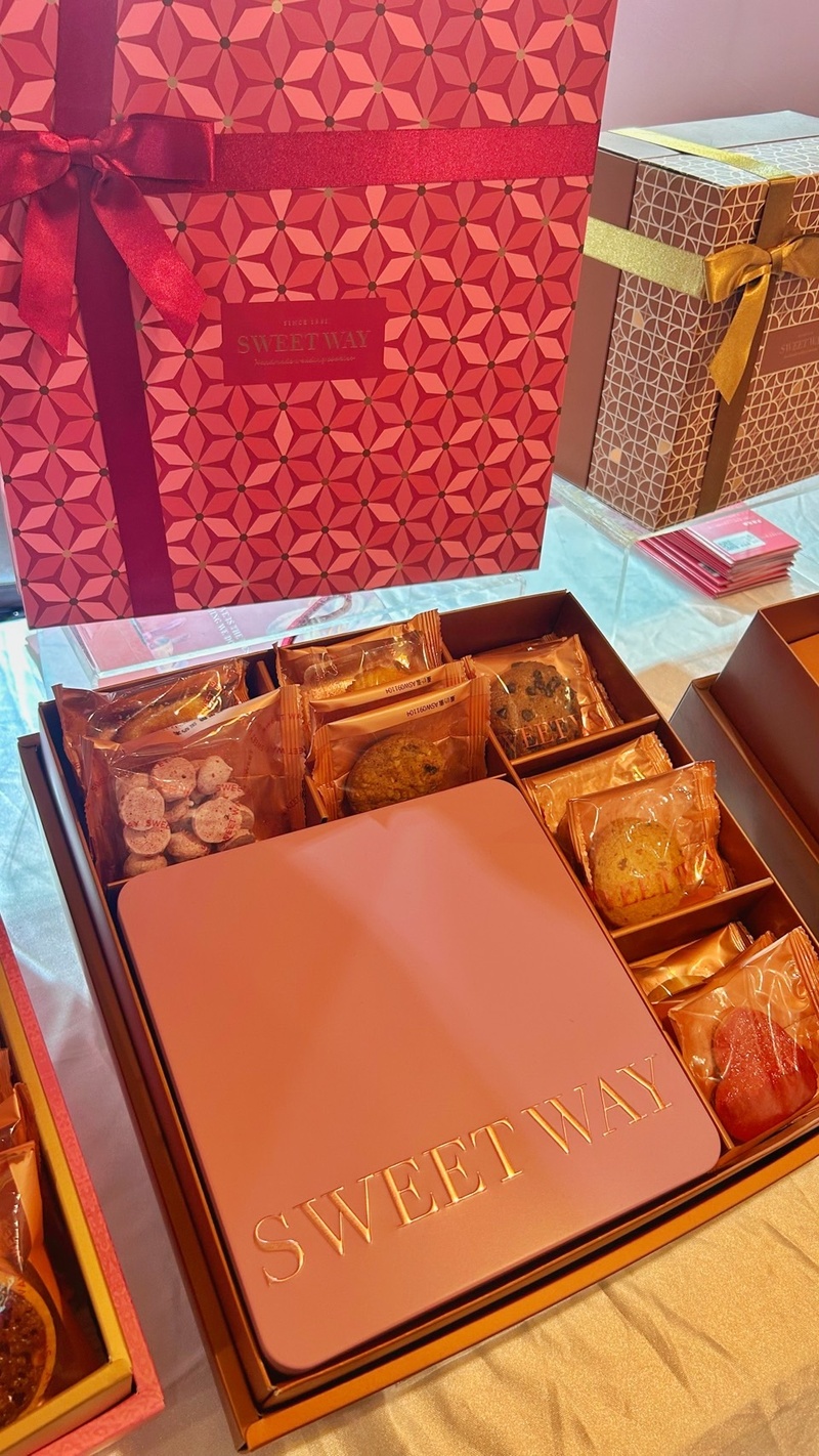 最吸引我的就是世唯囍餅的攤位,禮盒展示超美,看起來典雅又有喜氣,不會俗氣,顏色跟質感完全合我心意。試吃時真的被驚艷到!中式大餅內餡紮實,紅豆泥細緻、蛋黃香氣濃郁、肉鬆不乾,完全不會膩。西式手工餅乾也好吃,口味多又酥脆,朋友收到一定會喜歡。