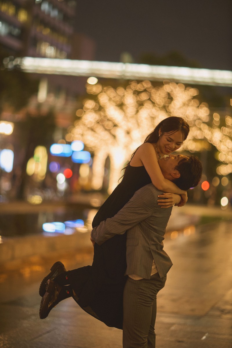 我們拍攝當天剛好遇到颱風外圍,雨有時小、有時大,天氣狀況其實蠻不穩定的,本來很擔心畫面會被影響。但攝影師完全是神隊友的存在——風雨無阻、不抱怨,還一路陪著我們從淡水拍到自強隧道、停車場、最後到信義區。每一個景點都是我想拍的風格,他都能把感覺抓得超準,還會引導動作、調整姿勢,讓我們兩個完全不尷尬。