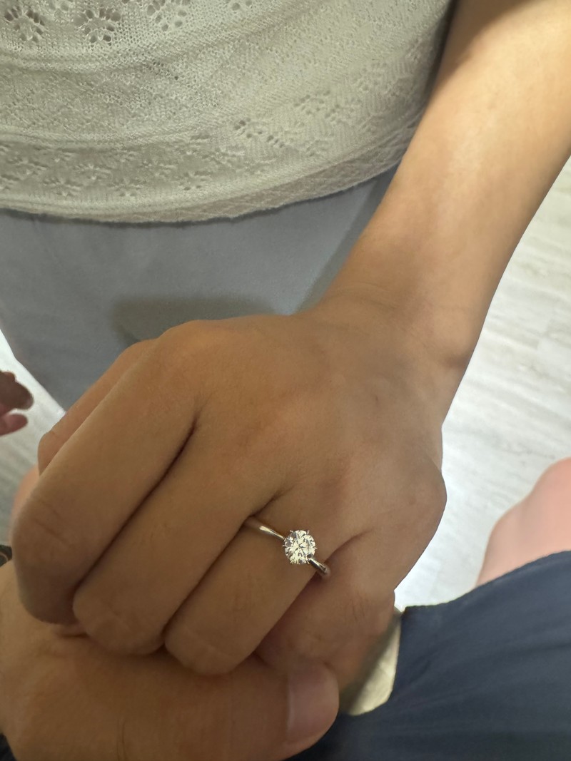 一開始服務人員先了解我想要的風格,像是偏簡約還是華麗、希望鑽石大小在哪個範圍、預算約多少。原本我對鑽石的 4C 其實沒有太大概念,但專員會用很生活化的方式解釋,還拿不同鑽石給我比較火光、晶瑩度和切工。那時候我才真正感受到「鑽石品質好不好,用眼睛就能看出差別」這句話的意思。
