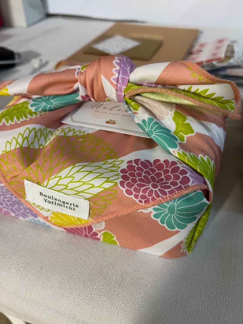 順道パン的風呂敷喜餅給我的第一印象就是「質感很到位」。外盒配色沈穩不俗氣,搭配風呂敷綁巾,不只是一份喜餅,更像是一份可以長久保存的禮物。對比市面上許多過度包裝、但內容普通的喜餅,順道パン顯得更專注在實際體驗上。