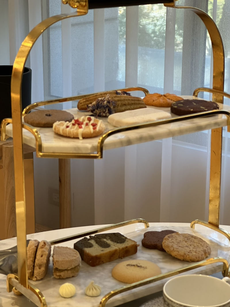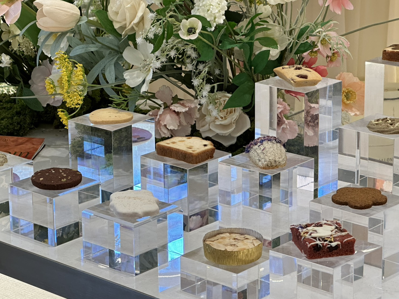 試吃提供了12種口味喜餅,法式草莓愛心造型的蝴蝶酥,一口咬下相當酥脆,餅乾表面以白巧克力和苺果乾碎粒作點綴,吃起來口味清甜不油膩;糖霜瑪德蓮帶有伯爵茶香,搭配糖霜包裹矢車菊作為點綴,整體看來就想從童話中跑出來的小甜點!泰式奶茶入口時不會有特別濃烈的味道,但帶有獨特風味的泰奶香氣會慢慢在口中散開來,讓人想一口接著一口吃下去;鉑金檸檬糖霜吃下去後卻意外的甜度適中,還帶有淡淡檸檬香;海鹽巧克力開心果微苦帶甜的巧克力搭配開心果和杏仁、再以海鹽做提味,是一款讓味蕾咻咻升級的「大人式風味」!