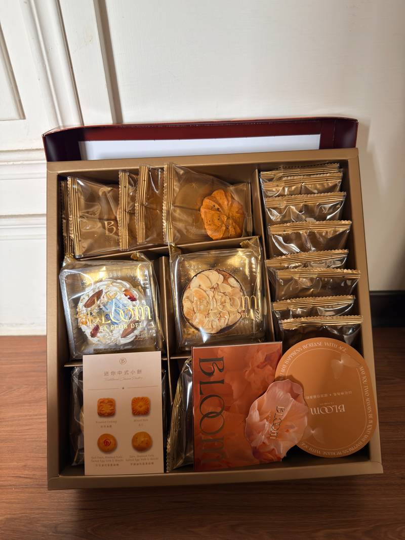原以為真的只是氣派的包裝,沒想到裡面的點心們出乎我意料的好吃😋適合喜歡平常口味微甜的朋友們,這次收到試吃盒讓我著實驚嚇到🤣🤣有夠大盒有18種點心試吃完後可以自己挑選組合去做搭配,搭配熱熱的茶,一吃好想每個都選哈哈哈哈哈😂如果你也是想找不太甜適合大人口味的喜餅,花神bloom 真的可以列入名單去選擇👍