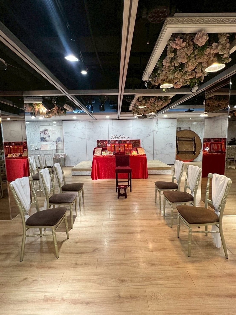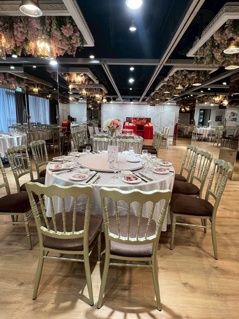 三重彭園的宴會廳氣派又典雅,佈置精緻,整體氛圍非常溫馨浪漫。最棒的是動線規劃很流暢,賓客進場、用餐、新人進場都沒有擁擠感,拍照起來更是每個角落都超美!