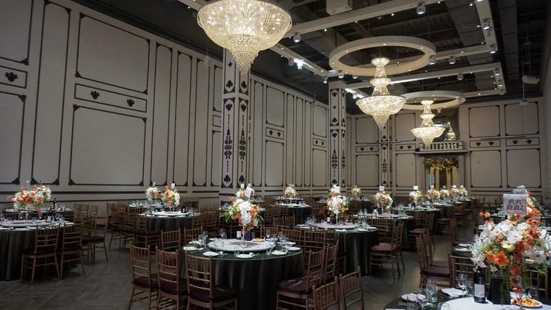 加上婚宴場地佈置配套,主桌有專屬的設計花卉,骨瓷餐具,主桌椅背裝飾。其他宴客桌擁有典雅菜單,桌次卡,以及各桌迎賓喜糖。