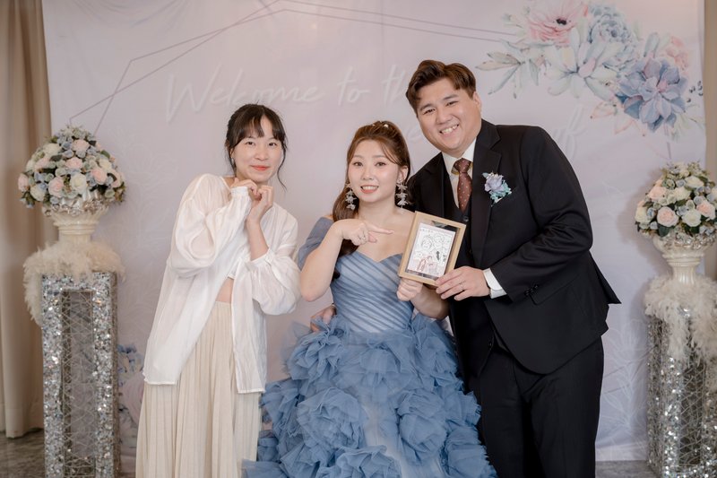 而且我們在收到作品後,才發現婚錄老師有去找親友們,錄了一些想對我們說的話,這個結完婚也沒人跟我們說,真的是超級驚喜的!!(下面圖片大推推我們的婚禮似顏繪畫師-Hong Hong )