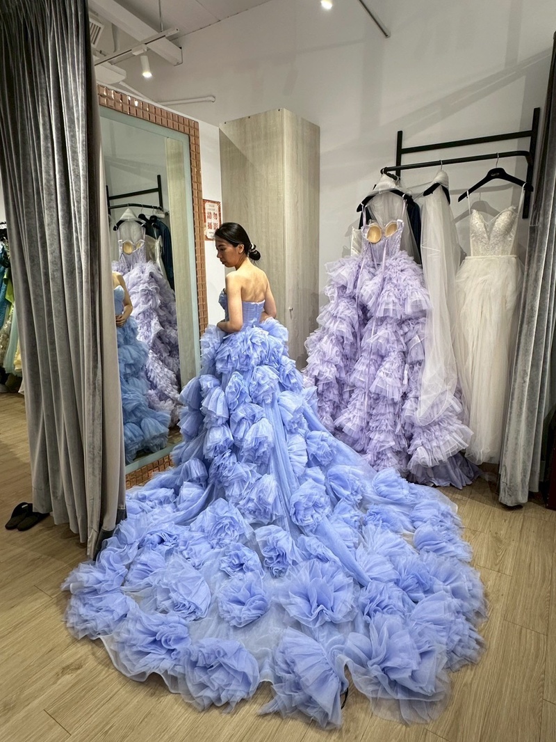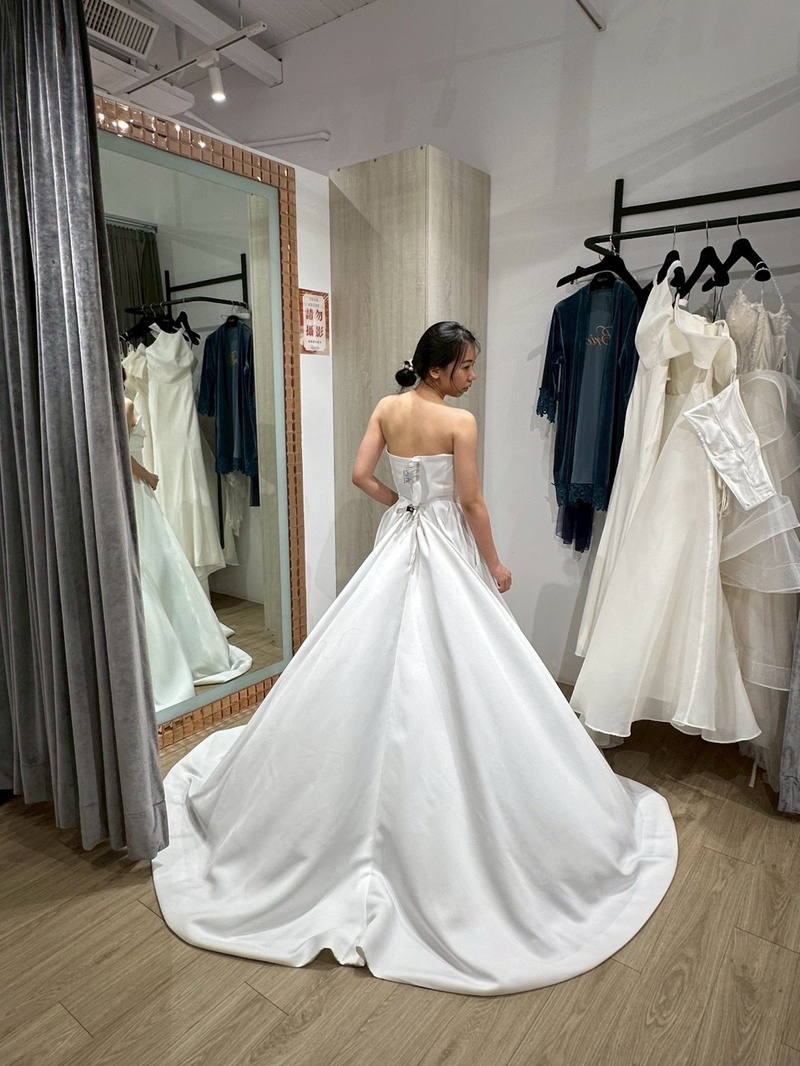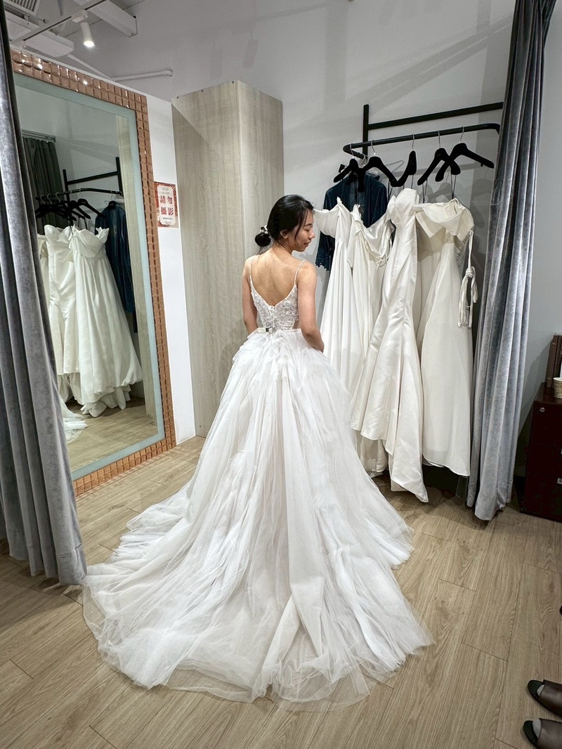 試衣那天也很感謝 Claire 的協助。婚紗款式真的太多,選到後面真的會有點混亂,但她一直給我們足夠的空間與時間,讓我們慢慢挑選真正喜歡的款式。